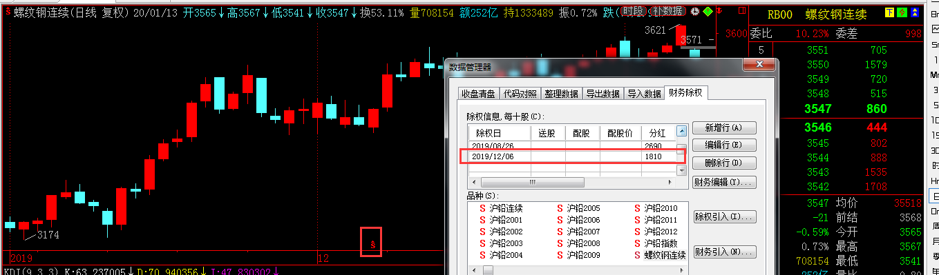 通过除权的方式把因换月造成的缺口补齐,使得连续合约具有连续性和完整性;在K线图上会显示除权标记,可通过F11切换除权/复权状态