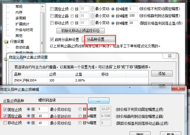 可以直接用账户栏的 止损止盈功能,按分品种设置即可 ; 还可以直接在图表上拖动止盈止损线修改价格