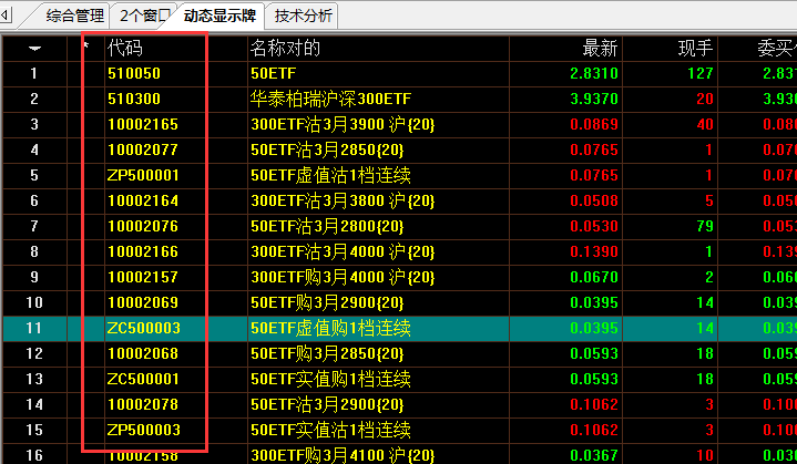 动态显示牌就有期权品种的代码,您说的是哪里没代码不方便?