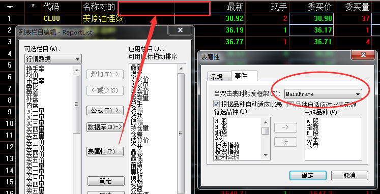 请教:能否双击列表里的品种,进入我自己设计的技术分析框架,而不是进入默认的那个