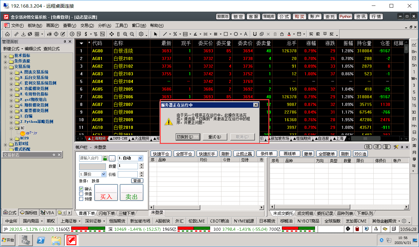 金字塔客服中心 - 专业程序化交易软件提供商金字塔软件金字塔软件问题提交 → 由于另一个程序正在运行,此操作无法进行