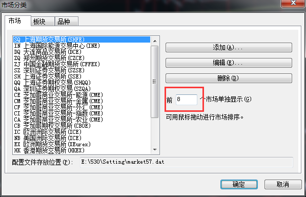 工具 》 市场与板块 ,红框设置改小,不要的市场可以直接删