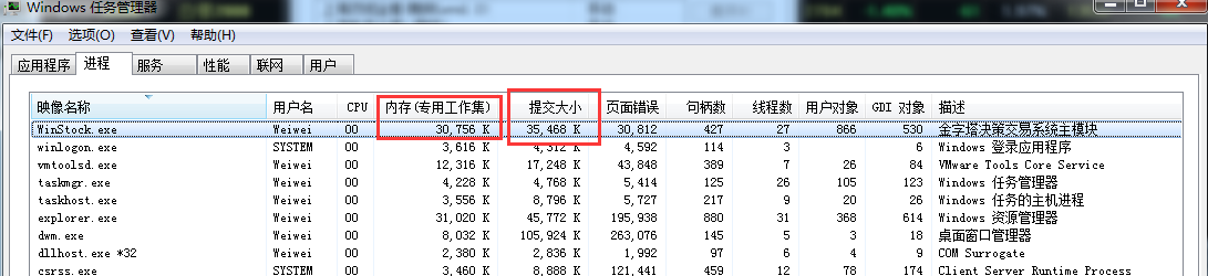 那么我们如何去看金字塔实际上的使用内存呢,我们以WIN10为例,打开任务管理器,并且还至详细信息栏,其中软件的实际内存占用是 工作内存+提交大小 2项,如下图展示:(若没有显示提交大小列,鼠标右键表头选择“选择列”功能)