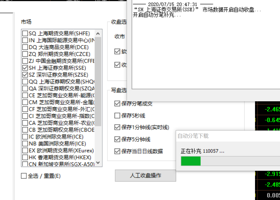 盘后才打开的软件,需要通过4楼的方法先补充 日内tick数据后再做收盘处理