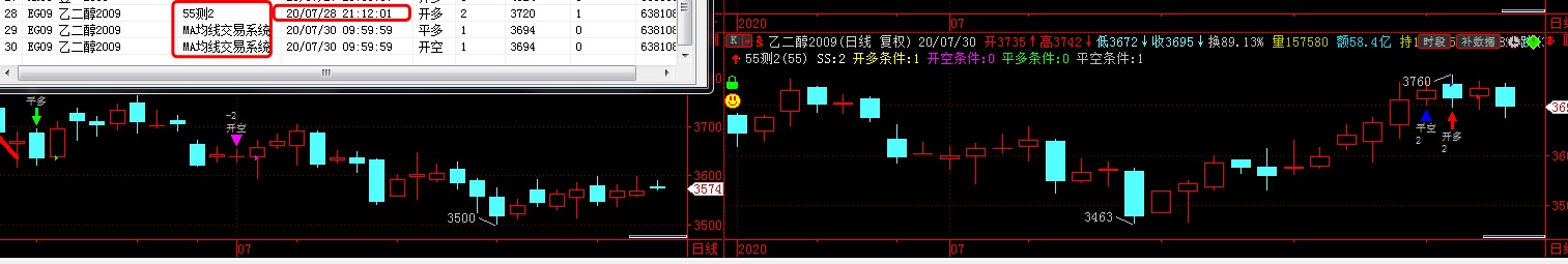 二、我现在测试的品种中,有两个指标交易系统,比如菜粕,我用了A指标交易系统;EG我用了B指标交易系统。前两天EG按照B指标交易系统正常开单,但是今天我发现,突然EG这个品种,也用了A指标交易系统开了一单。请问这是怎么回事?