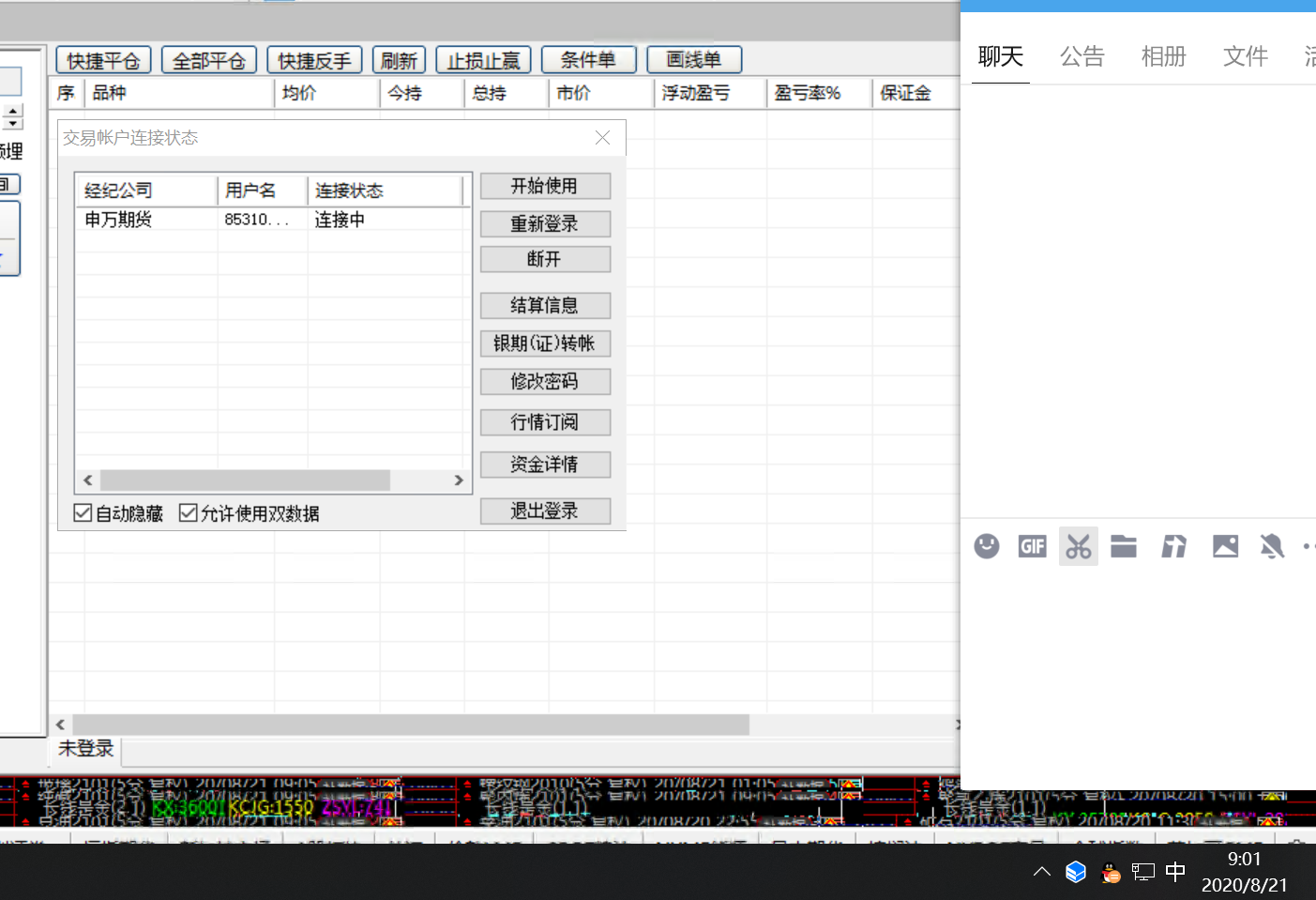行情能连上,账号一直连接中吗,换个交易站点登陆试试呢