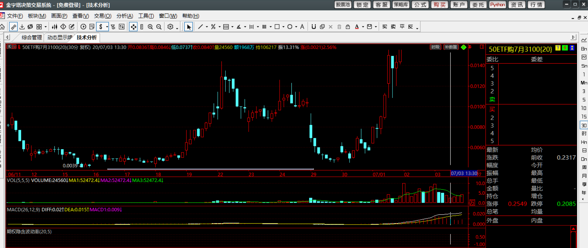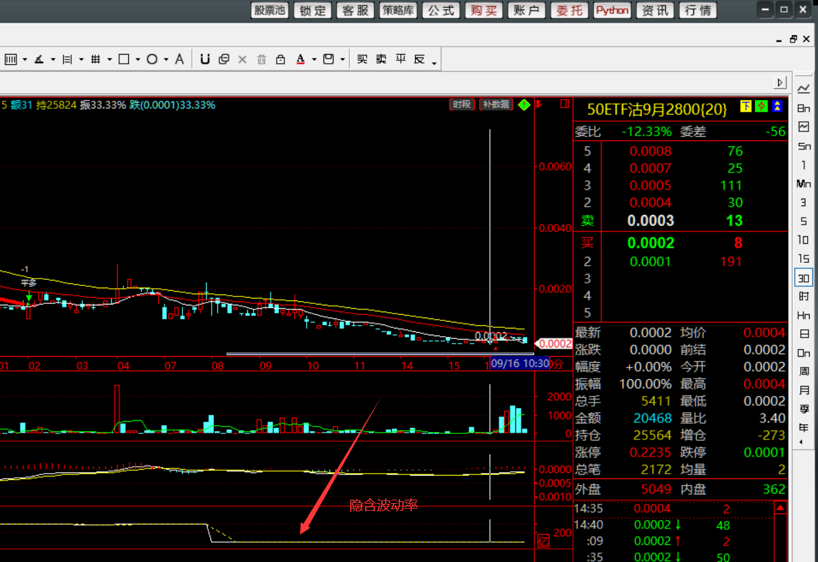 请教:电脑里安装了两个金字塔,30分钟级别里,一个能够正常显示隐含波动率,另外一个不能正常显示。请问是什么原因。