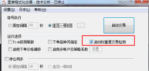勾选重复信号检测,会弹出对话框,再点否即可避免重复发单