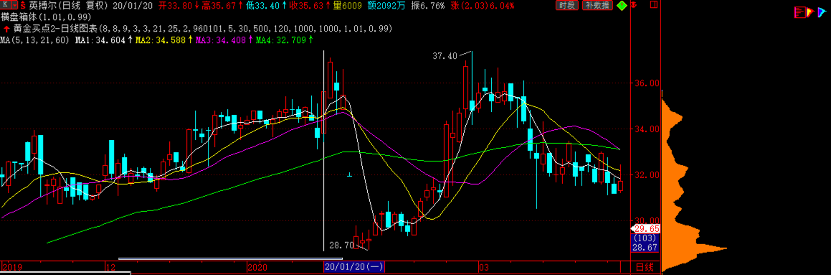股票英博尔2020年1月20日的筹码峰实际有多个波峰的图形