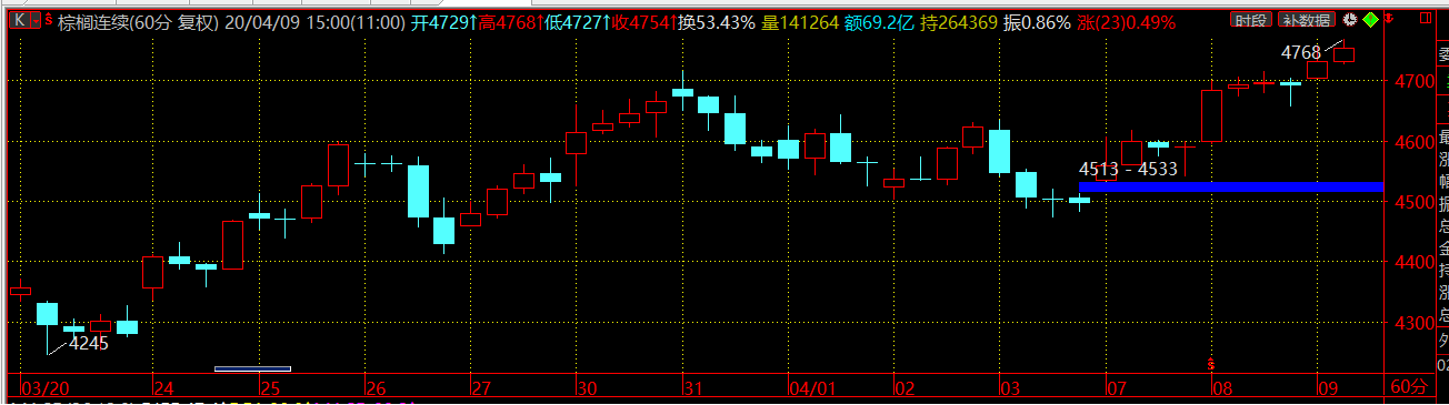 主题:棕榈连续小时线怎么没有夜盘K线了?