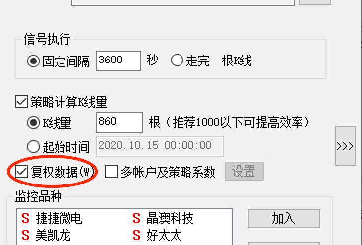我做回测时出现错误的计算,查看原因时发现是由于有些股票的前复权设置没有起作用,例如捷捷微电,2020年5月26日有除权,工具>选项中的设置也是前复权,但是k线中仍然是未做前复权的状态,还没验证这是否是普遍存在的问题: