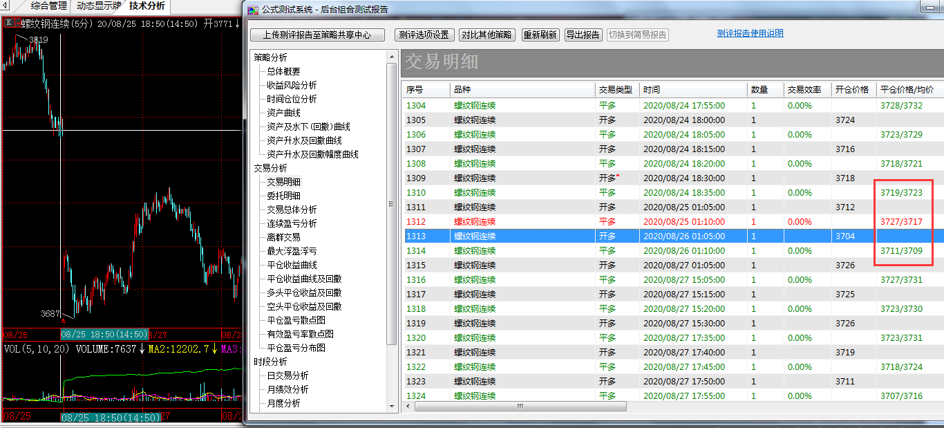 3. K线图上F11后是切换到复权状态了。但是如果打开之前完成的精细化历史测评报告,从明细中点击相应的交易记录,看到的k线图上又回到了未复权状态