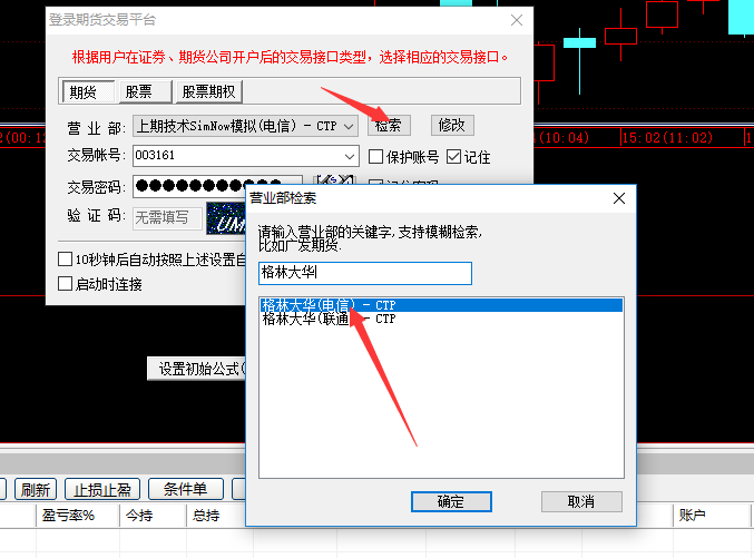 在金字塔交易界面营业部列表里,找不到格林大华期货公司,是不是下载的版本不对