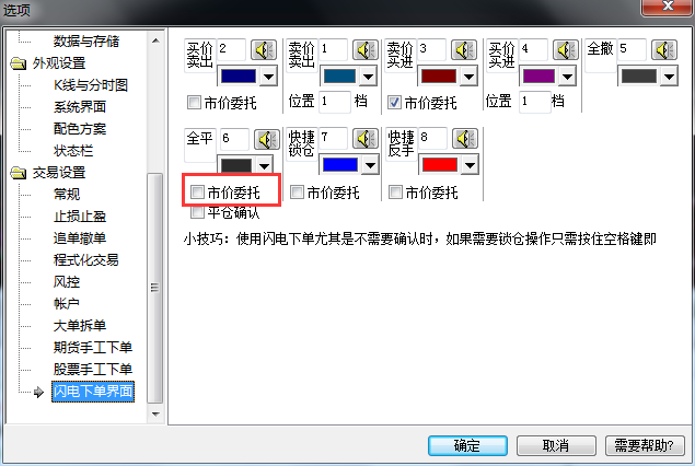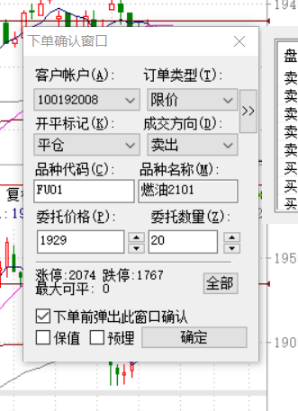 请教:我按住 6键盘,出现这个界面,我不要限价,默认为市价,怎么搞,能不能不要出现这个对话框,直接就平仓了。