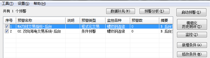如果仅是本地条件预警的话,是没法查看后台监控的,需要后台程序化才可以查看。