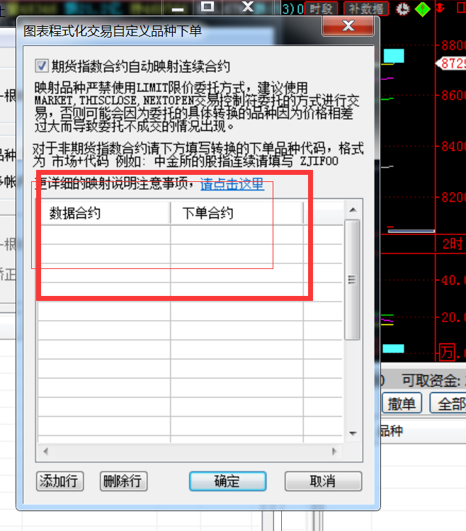 你的意思是说在映射设置中的目标下单合约设置为主力连续合约(比如铁矿连续)时才需要勾选允许主力连续合约下单交易 吧??  如果是在映射设置中的目标下单合约选为铁矿2101,这样许主力连续合约下单交易是不是不需要勾选也可以??
