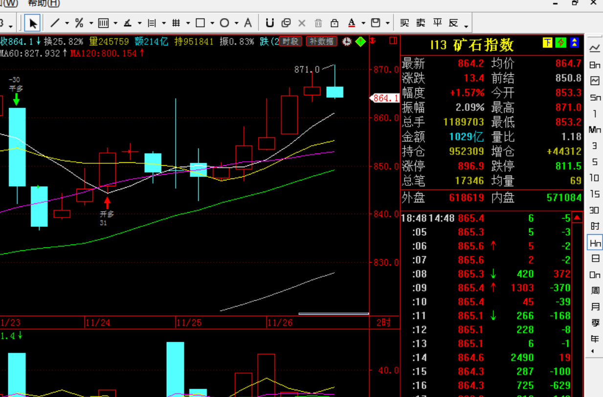 我现在运行程序化后, 但做多信号产生的时间是在之前的K线中,