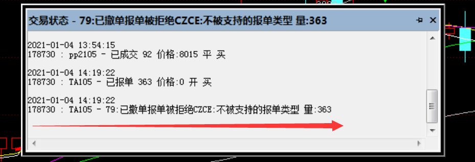 178730 : TA105 - 79:已撤单报单被拒绝CZCE:不被支持的报单类型 量:363