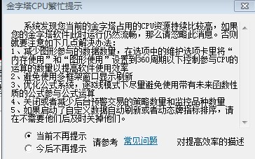 参考图上的常见问题链接进行修改,出现提示表明系统运行时,CPU消耗大,会影响到系统的运行