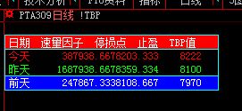 DRAWTEXTABS(5+X1,5+y,'日期  速量因子  停损点  止盈  TBP值   '),COLORwhite;