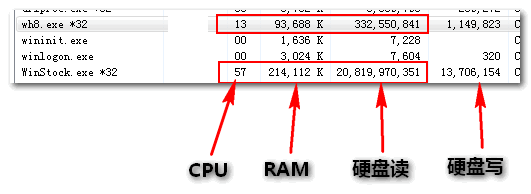 开8个框架,各有一主图一副图,开盘时段,硬盘每秒读取4M,开盘一个小时读取了18GB数据。此时占用内存200M