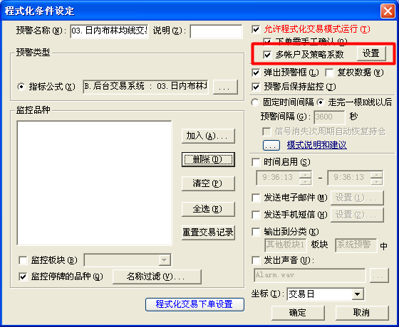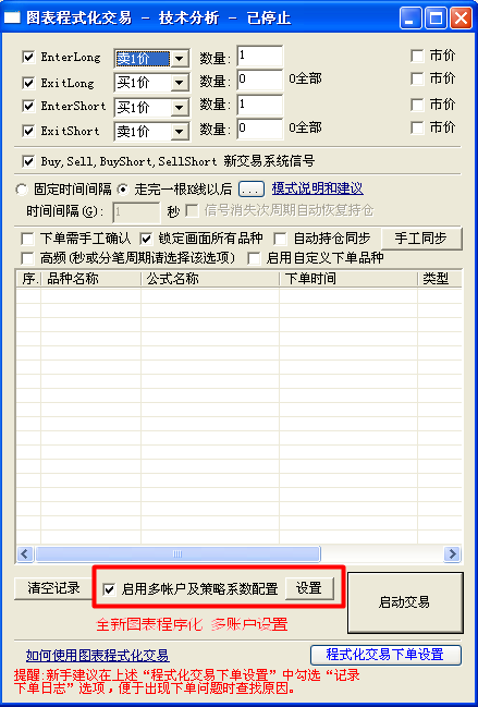 后台程序化下单,设置基本同图表程序化类似,具体设置见说明。设置相关系数。具体设置见说明