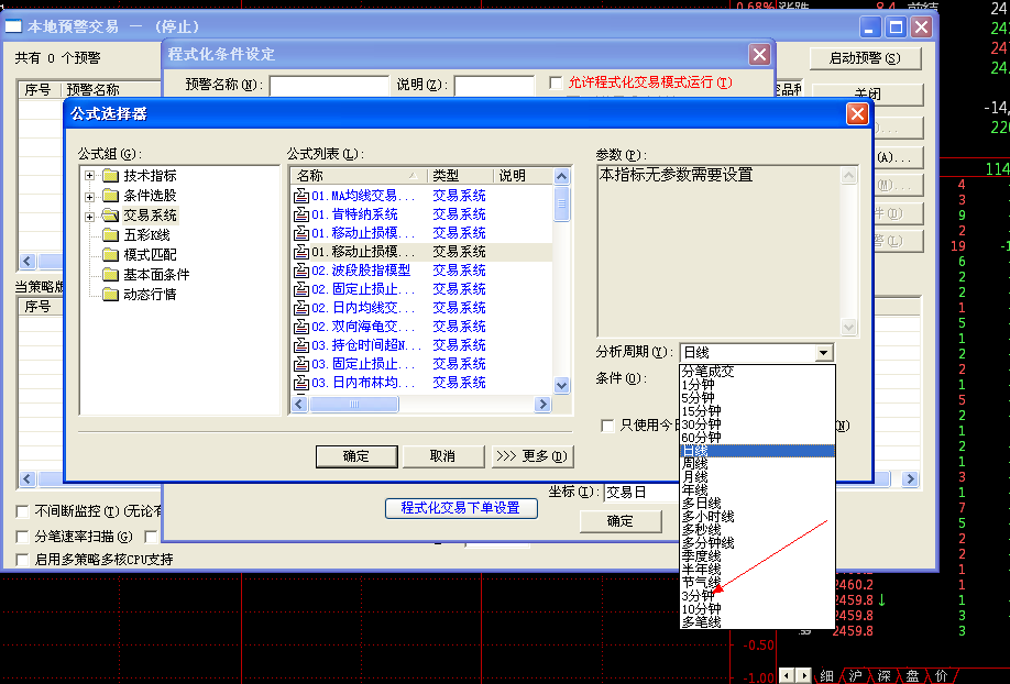 在后台预警中的可选的〔分析周期〕,貌似找不到单独的3分钟的?