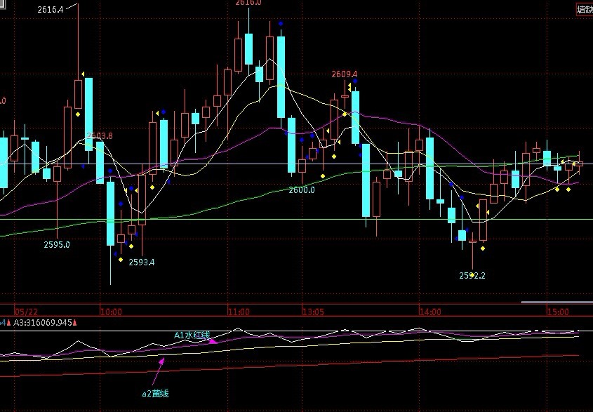 如下图,我设A1(水红线)上穿A2(黄线)买入,反之平仓卖出。今天5分钟线A1一直在A2上方,没有下穿上穿动作,但我只对今天测试,却有2笔交易,不知为什么?