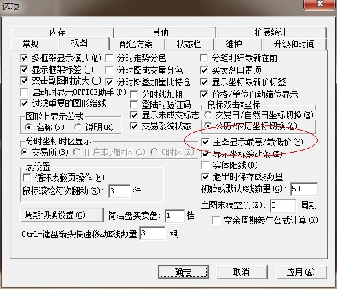 工具-选项-视图,然后勾选主图显示最高价/最低价。