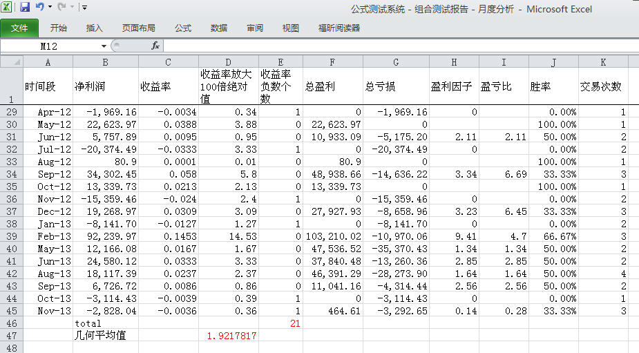 根据我的计算复核,月收益率的几何平均确实是负的,但数值和软件显示不一样。