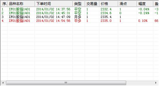 2014-01-02 14:54:56.718    【回报】801096 : IF01 - 正在申报 1 价格:2334.600 平仓 卖出