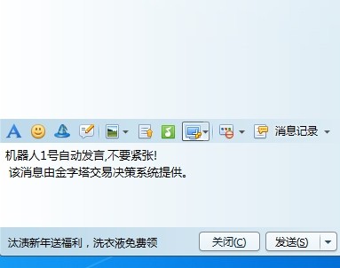 call obj.TransMessage("证通量化", "机器人1号自动发言,不要紧张! ")