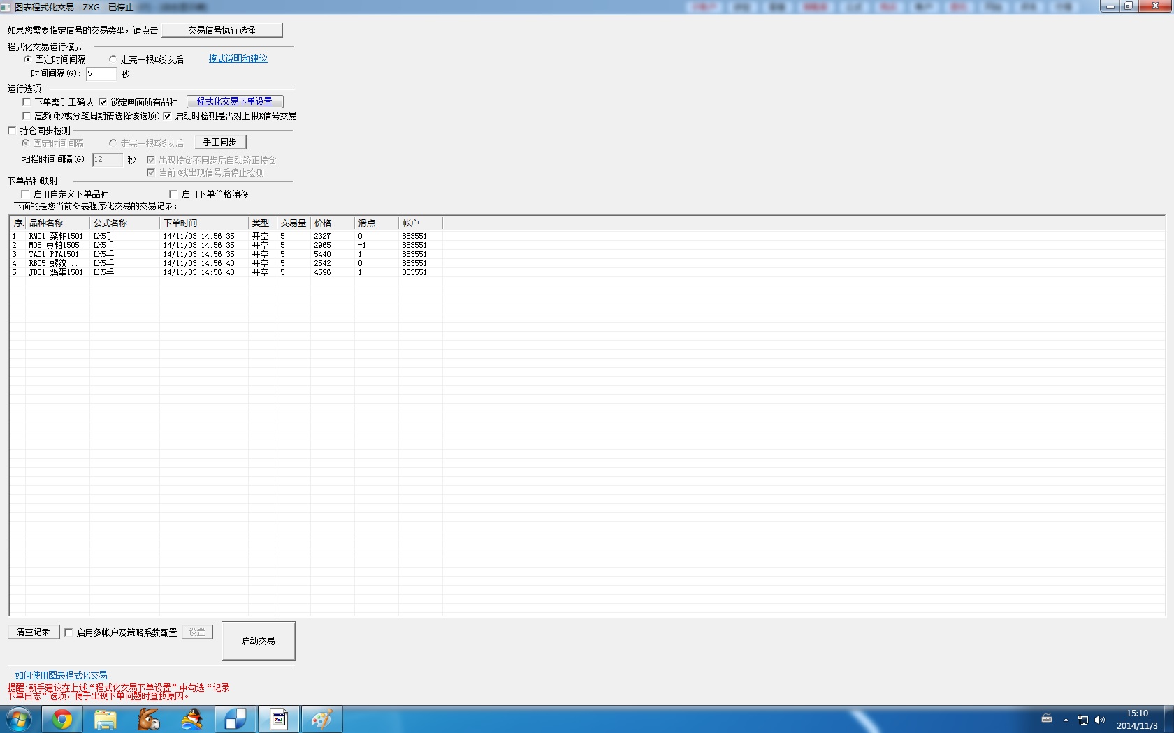 现在符合开平仓条件的已经成功下单,但成交的时间却是14:56:35-14:56:40