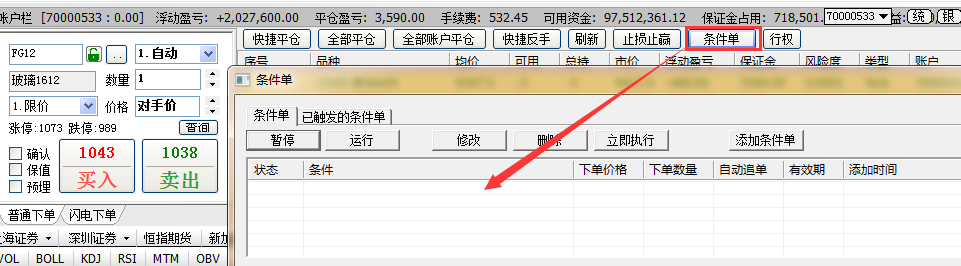 没有预埋单,账户栏可以下条件单