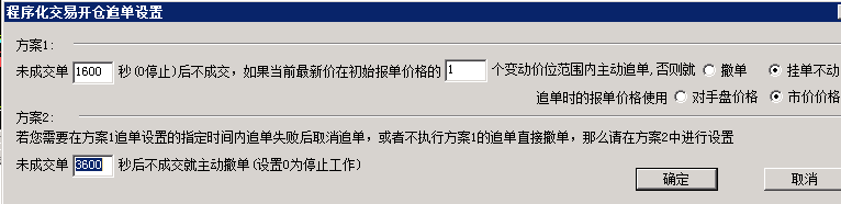 死不追单的为开仓设置,    ( 不成交1小时后撤单)