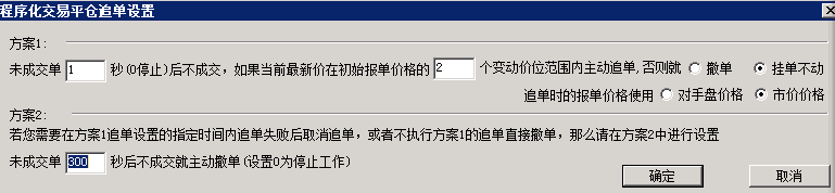 1秒不成交立即追单的为平仓设置