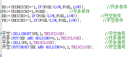 KK:=(BEICHI=1,IF(FOXL<LOW,FOXL,LOW));          //开空条件