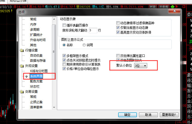 50ETF期权,通常都是有小数点后到第四位价格,,而系统设置的是显示小数点后到两位,这一点适合95%的品种,不做改变。。