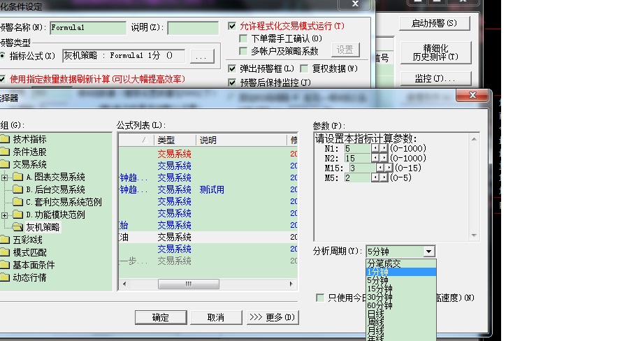 那么必须在这儿选择分析周期吗?我在窗口页面切换到1分钟周期,不可以吗? 如何不用再这边选择分析周期1分钟?可以用后台代码实现吗?