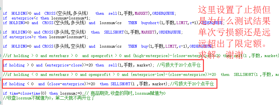 举例说明:大阴线的回测情况下,是触发了止损的20点,但是最终的成交价是大阴线的收盘价,而不是触发20点时的即时价格。这是策略在历史回测的限制。
