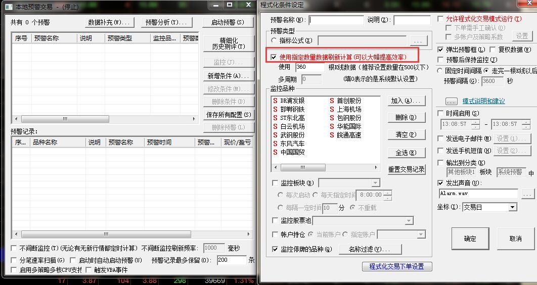本地预警里,哪里决定参与运算的K线个数?