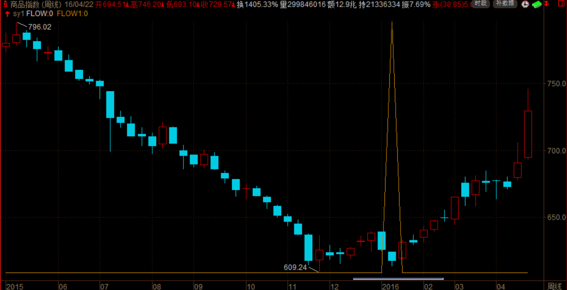 比如2016年1月8日的周线,商品指数的周跌幅超过了所有指数。