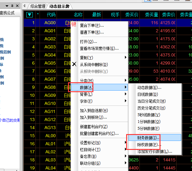 品种上右键-》数据-》财务数据/除权数据