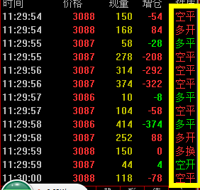看分笔数据里面   有开多   开空    平多   平空   我们这个软件怎么记录这个呢?  其它三方软件比如博弈里面就有这些数据的显示