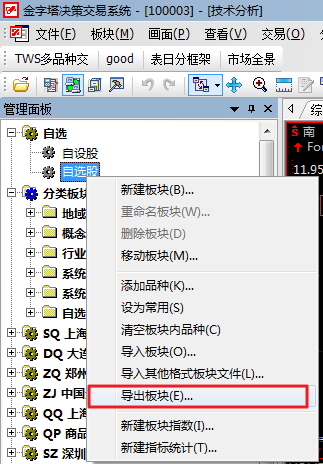在管理面板---板块中,右键自选股,选择导出。在管理面板---画线中,右键画线,可以导出。如果画线很多,可以尝试拷贝金字塔安装目录下的setting文件夹中的Draw1.drw文件,替换到新安装的相应目录中。