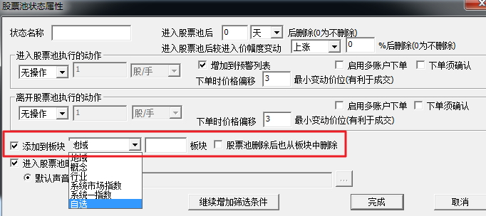 在设置股票池的时候,可以选择将选出来的股票添加至板块,如下图: