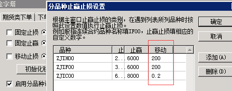 是设置固定分品种的止盈止损设置里面,有个移动的选项,如附件的红框,这个是如何设置?