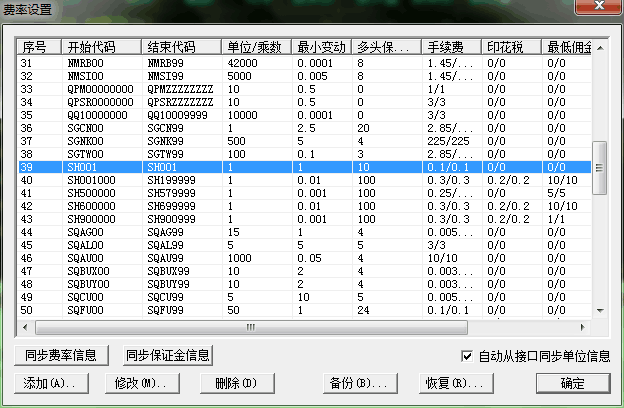 前面需要加上市场ZJ,开始代码ZJSH001,结束代码ZJSH001,也可以在测评中的交易费用中,不使用系统预设的费率。