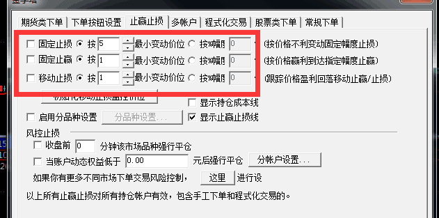 策略里面可以用代码语句控制止盈止损,在这里也可以做设置。代码里的设置可以更精细点,只是需要您对代码的编写比较熟悉。