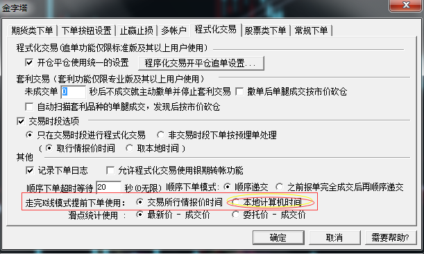 可以在交易----下单设置---程序化交易中,选择本地计算机时间(保证本地计算机时间的准确)